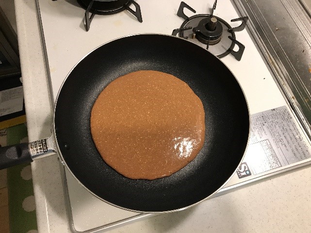 (3)テフロンのフライパンで油をひかずに弱火で両面焼く。約3枚は焼けます。