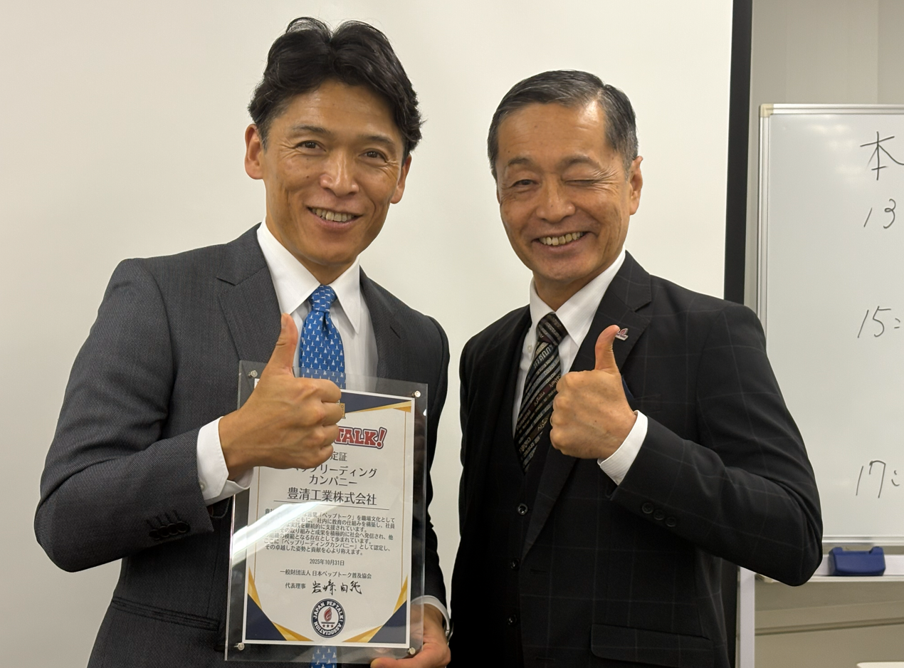 やる気を引き出す言葉がけの手法「ペップトーク」を取り入れるだけでなく、社内で教え・定着させる「教育の仕組み」を確立し、ロールモデルとして他社を牽引する企業への認定です。