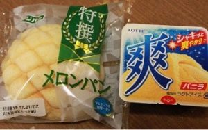 近くのスーパーでフジパンのメロンパンと ロッテの爽バニラ味を買ってきました。
