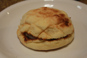 メロンパンのクッキー生地がサクサクで、アイスがパンにしみこみ甘く、美味しかったです。