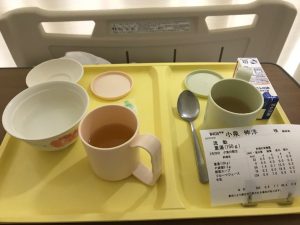ちなみに今回の写真は入院初日の食事となります。全部液体(笑)