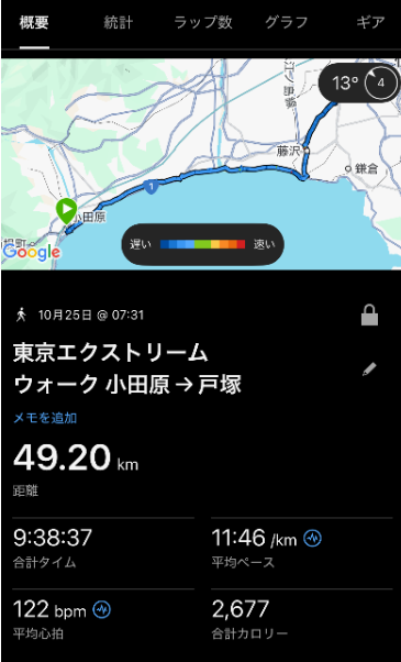 箱根駅伝8区でも有名な「遊行寺の急坂」で脚をやられ、最後は動かなくなった脚をゾンビのように引きずりながら、なんとか戸塚駅まで自力でたどり着いてリタイアしました。