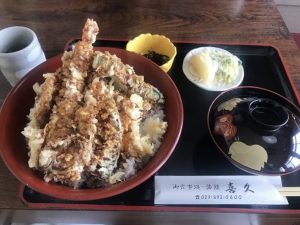 サクサクの天ぷらとつゆ染みご飯を交互にいただき、
