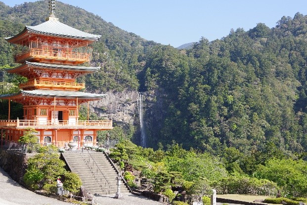 那智の滝は、自然崇拝を起源とする熊野信仰でご神体として崇められています。世界遺産として登録された「紀伊山地の霊場と参詣道」を構成する資産の一つとなっています。
