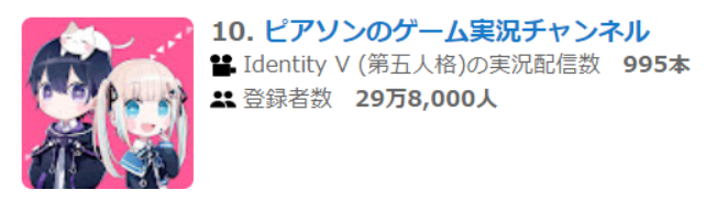 最後に第五人格の実況動画を配信しているYouTuberを少し紹介したいと思います。