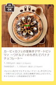 私が頼んだのはデザートピッツァのバナナチョコレートです(^^♪薄いピザ生地ですが、生地の真ん中はもちもちして、表面はパリッとしています。その上にはチョコソースにコーンフレーク、バナナ、ホイップ、イチゴ、ミントがのっていてるのですが、イチゴの酸味とミントの爽やかな味が良いアクセントになっていて、ただ甘いだけではないのでペロッと食べてしまいました\(^▽^)/